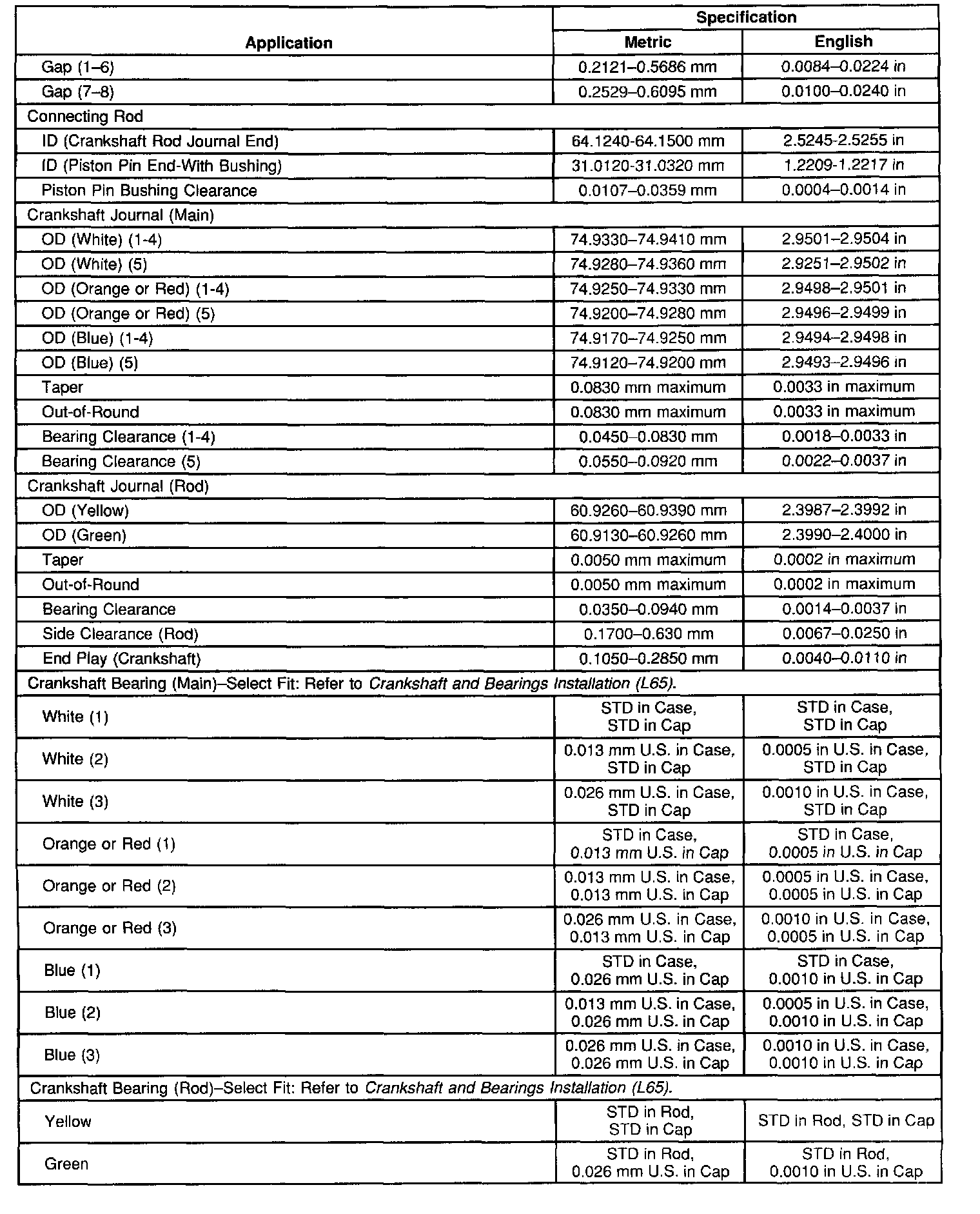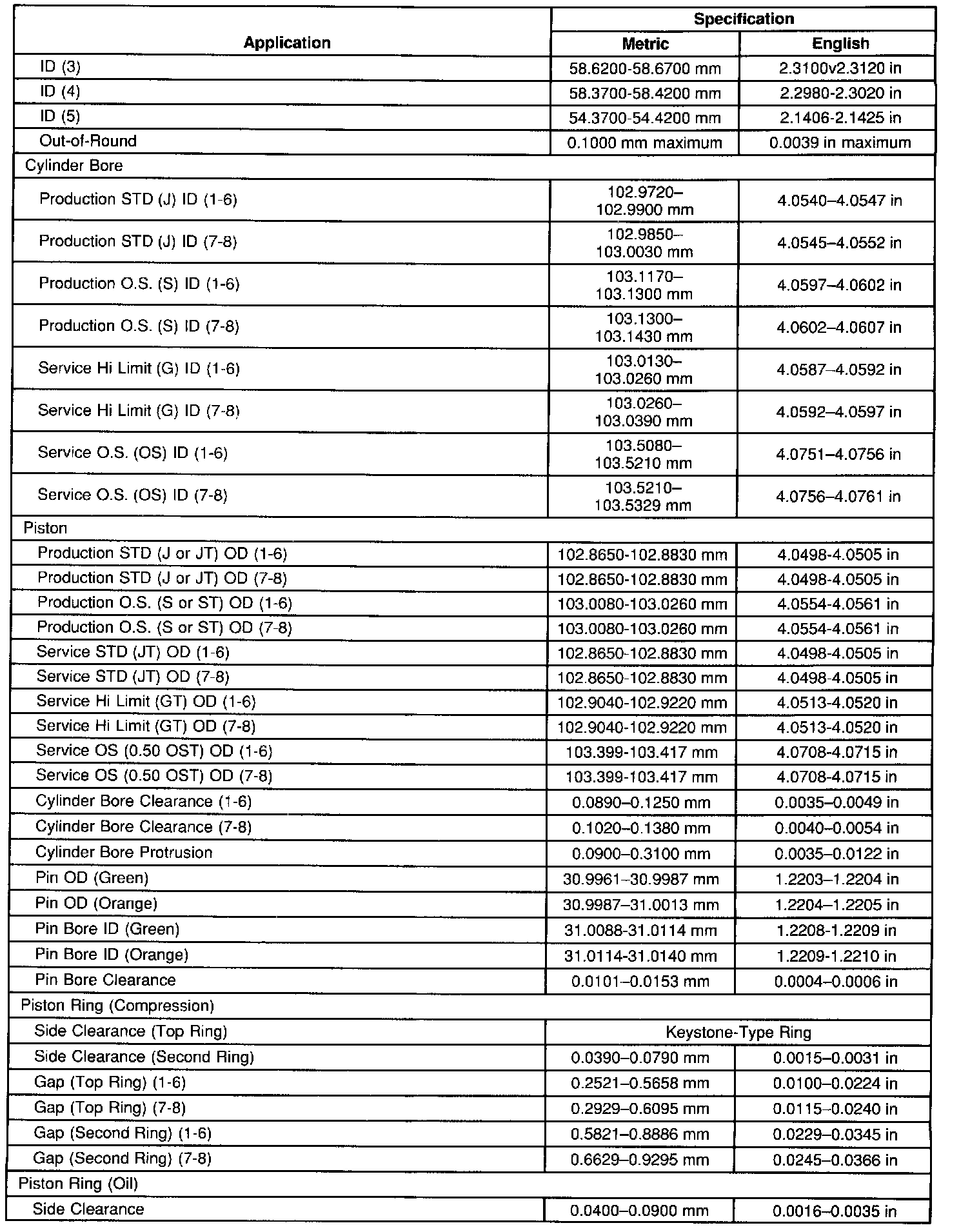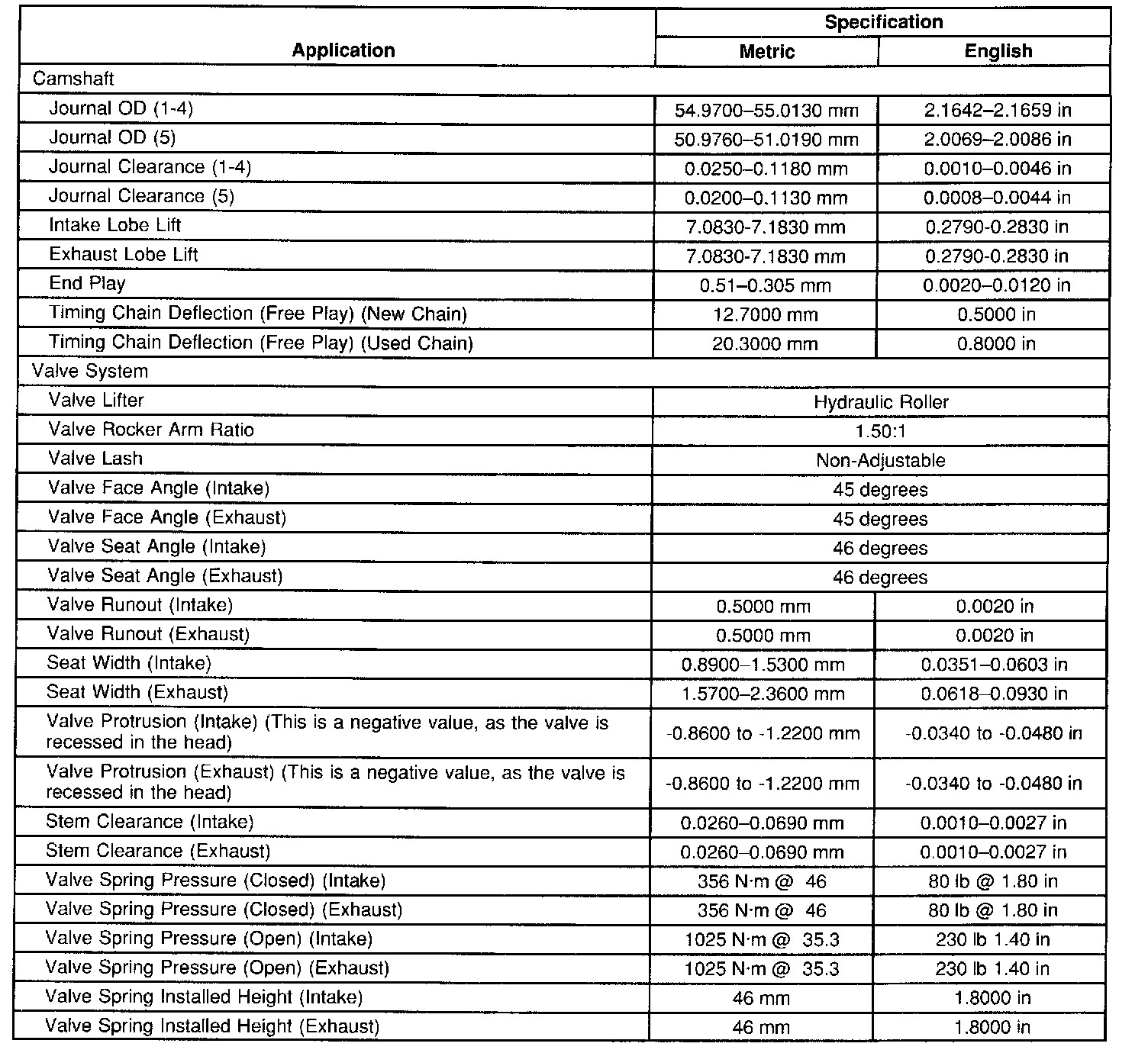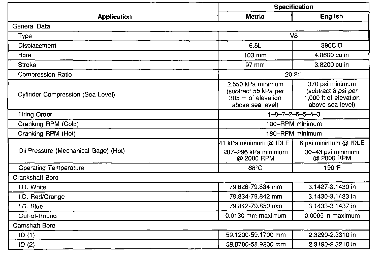 Engine Mechanical Specifications