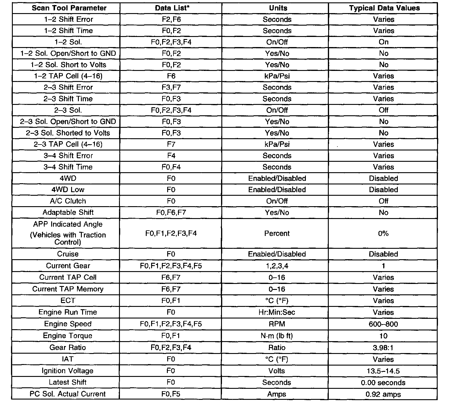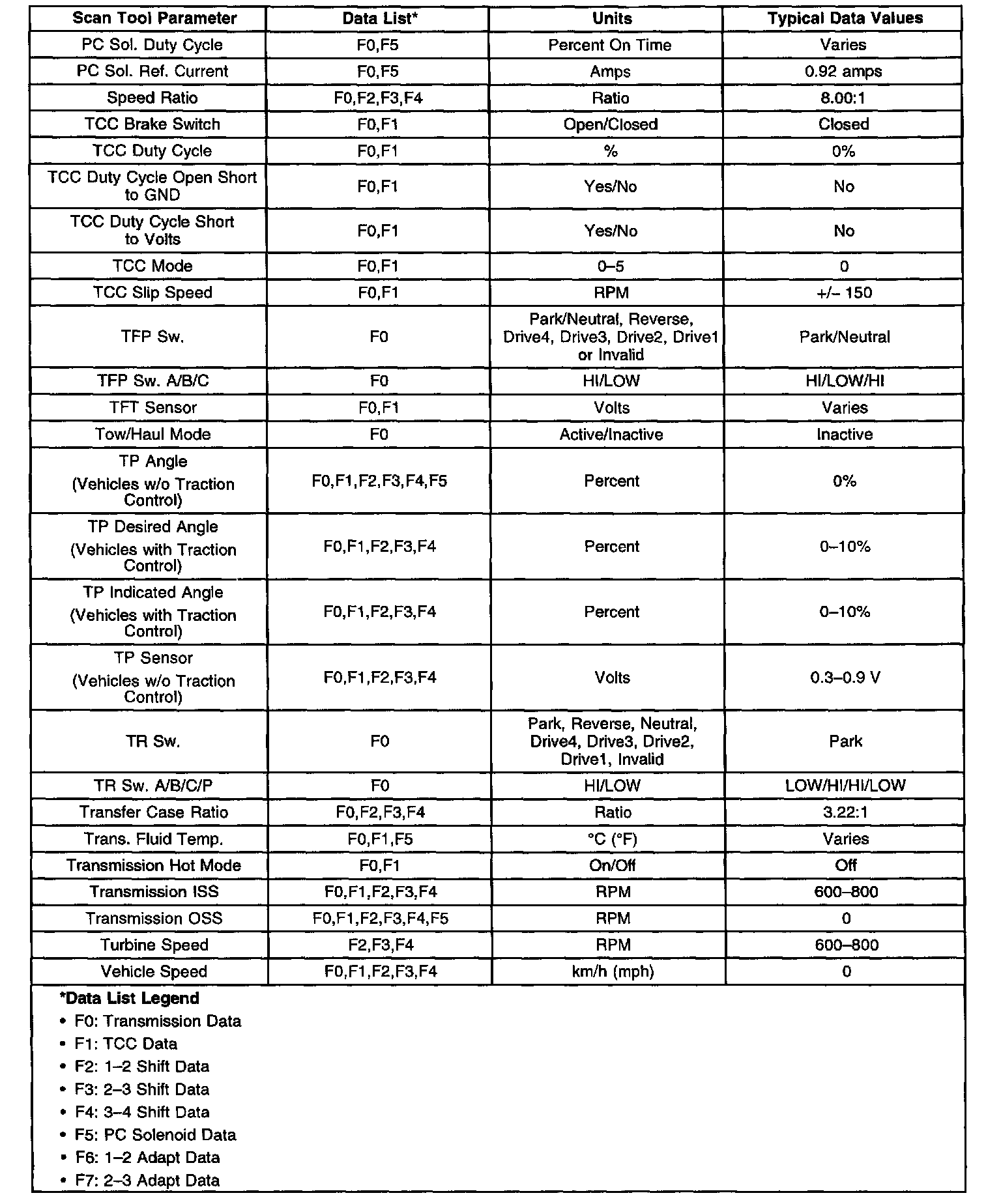 Only the parameters listed are used for diagnosing. If a scan tool displays other parameters, the values are not recommended by General Motors for use in diagnosis.