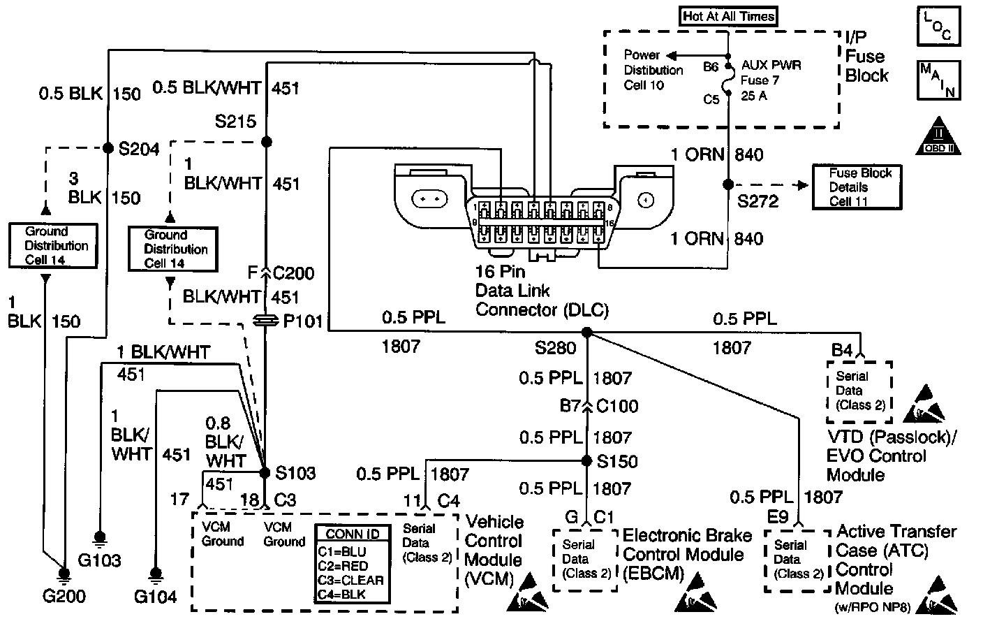 7. This step isolates the VCM by disconnecting all the other components on the class 2 serial data circuit. If VCM class 2 serial data exists after disconnecting all other components on the class 2 serial data circuit, refer to A Diagnostic System Check - Data Link Connectors in Data Link Connectors. Testing and Inspection