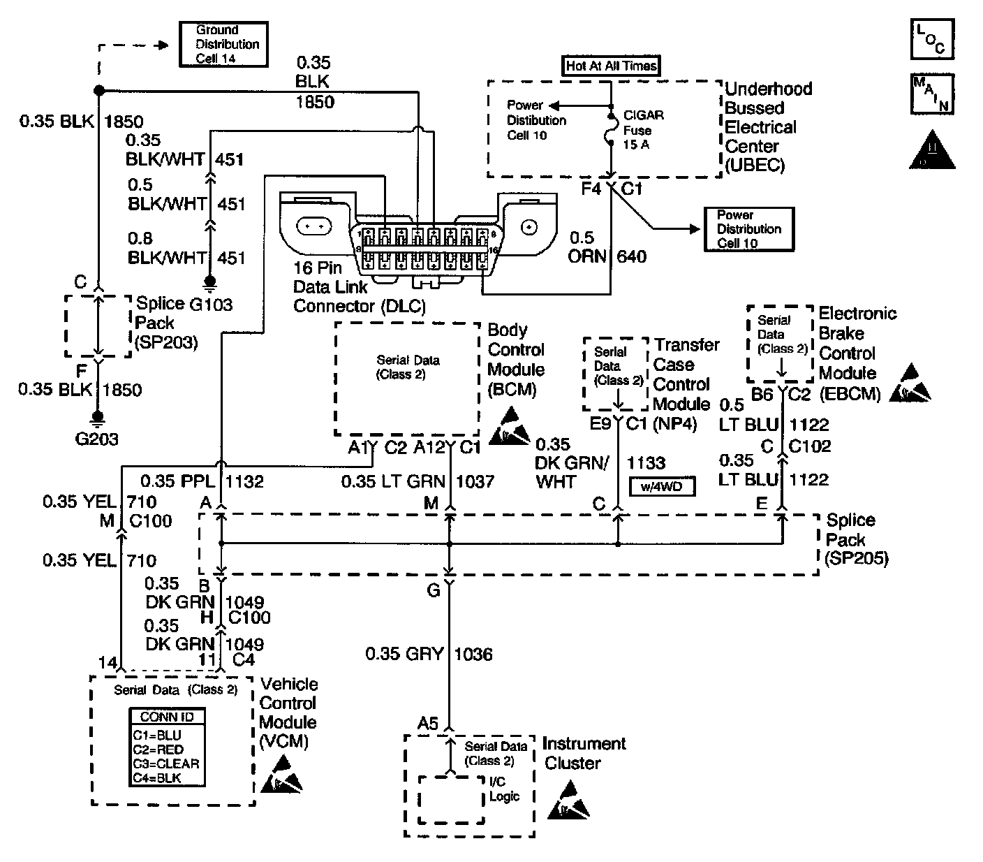 The Class 2 Serial Data circuit to the Data Link Connector (DLC) allows bi-directional communication between the Vehicle Control Module (VCM) and the scan tool. This is accomplished through pin 2 of the DLC. If communication between the scan tool and the VCM cannot be established, use the procedure in the DLC diagnosis table in order to diagnose the condition.