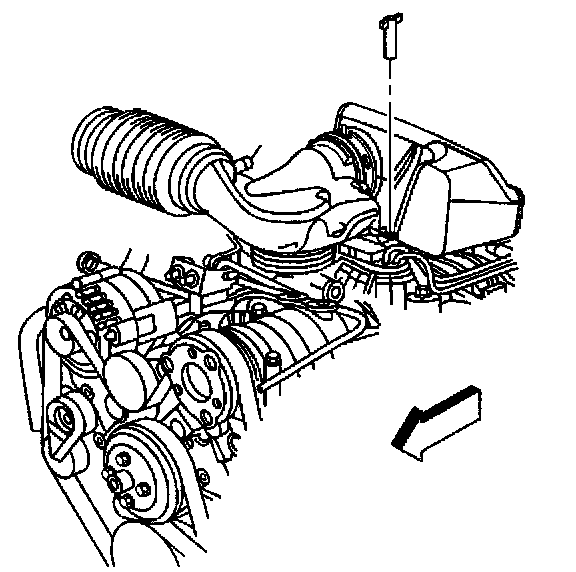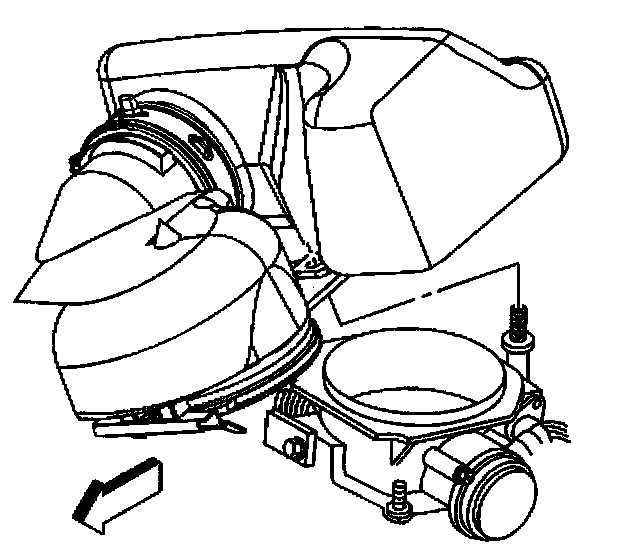 3. Remove the air inlet tube and resonator from the throttle body by pivoting the air inlet tube and resonator upward until the hinge clip releases from the lip on the throttle body.