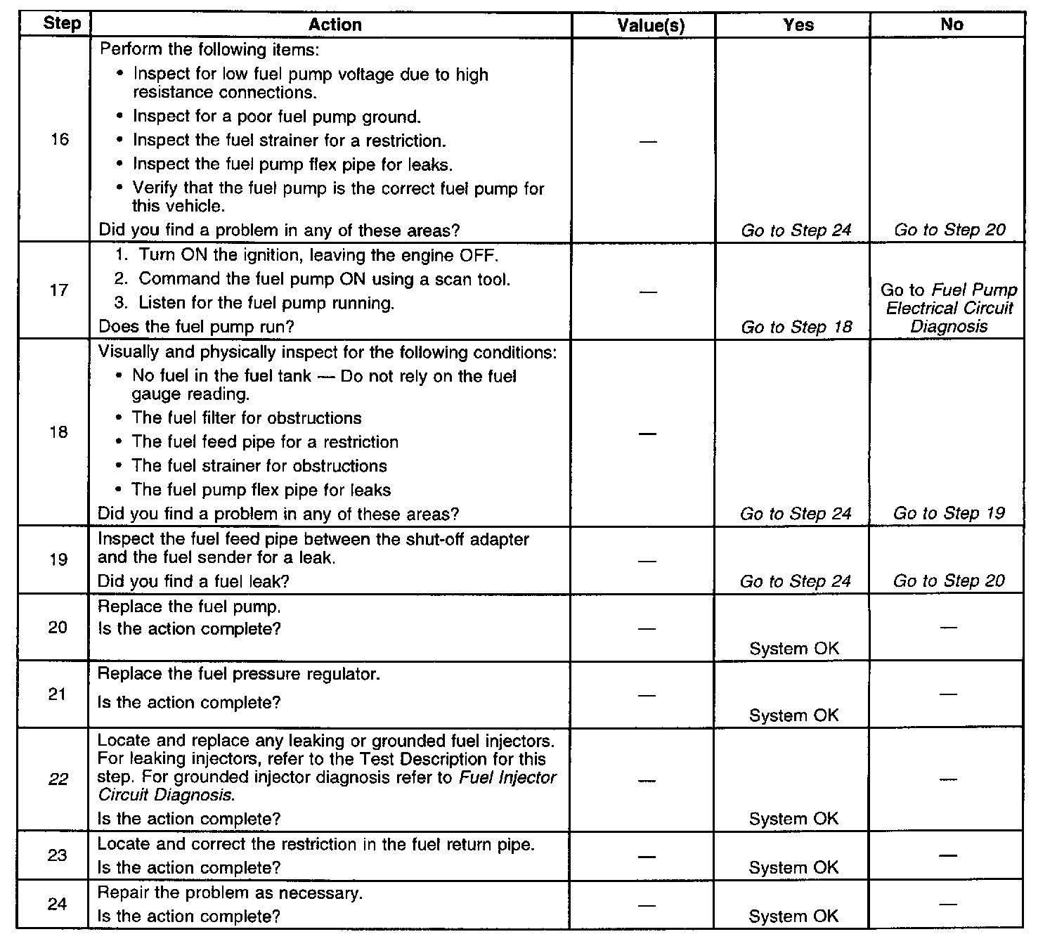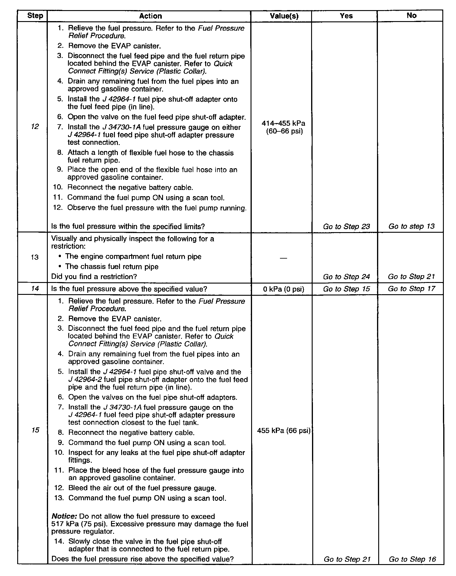 12. This test determines if the high fuel pressure is due to a restricted fuel return pipe or if the high fuel pressure is due to a faulty fuel pressure regulator.