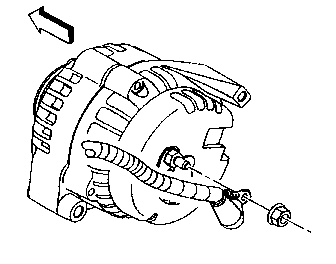^ Tighten the mounting bracket bolt at the back of the generator to 25 N.m (18 lb ft).