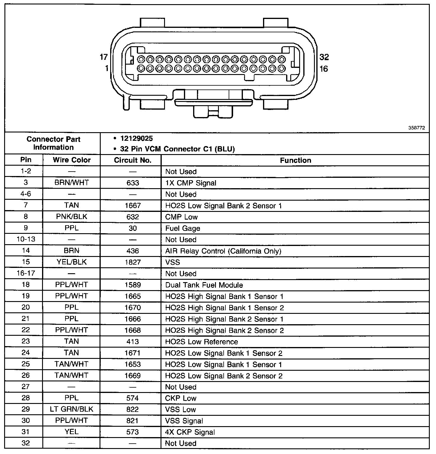 Vehicle Control Module(VCM) Connector C1:
