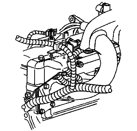 15. Install he bolt holding the EVAP emission canister purge harness and if equipped the transmission fluid fill tube.