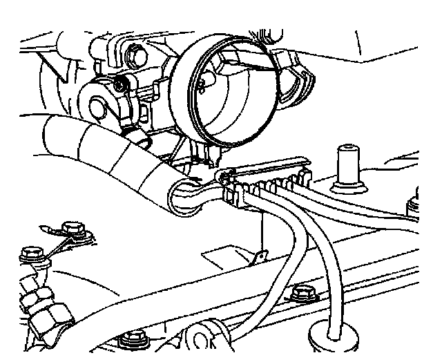 15. Disconnect the fuel hose from the fuel rail. Refer to Fuel Rail Assembly Replacement.