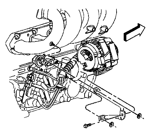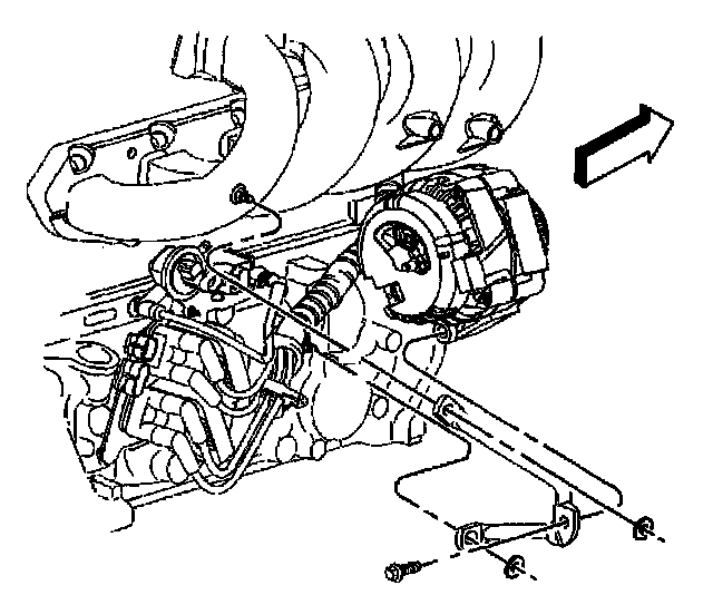 21. Working through the wheelhouse, remove the generator rear brace from the engine.
