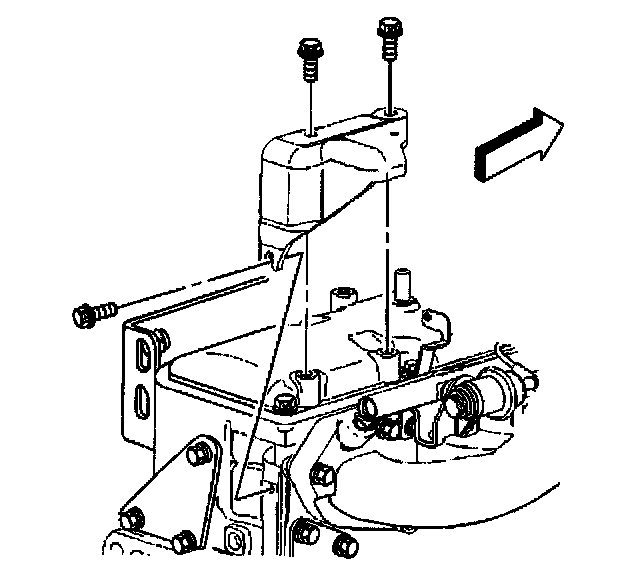 7. Install the nuts holding the brace to the intake manifold stud and the stud on the engine.