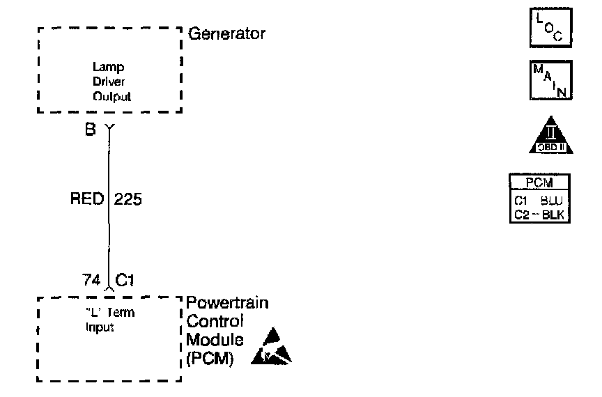The generator communicates to the Powertrain Control Module (PCM) over one line, the L or lamp circuit. The PCM uses the L circuit to monitor faults in the charging system. The generator L terminal indicates whether the PCM is allowing the generator to operate. The PCM can disable the generator under certain conditions in order to ease starting. Active indicates that the PCM is allowing generator operation, while inactive indicates that the PCM is not allowing generator operation.