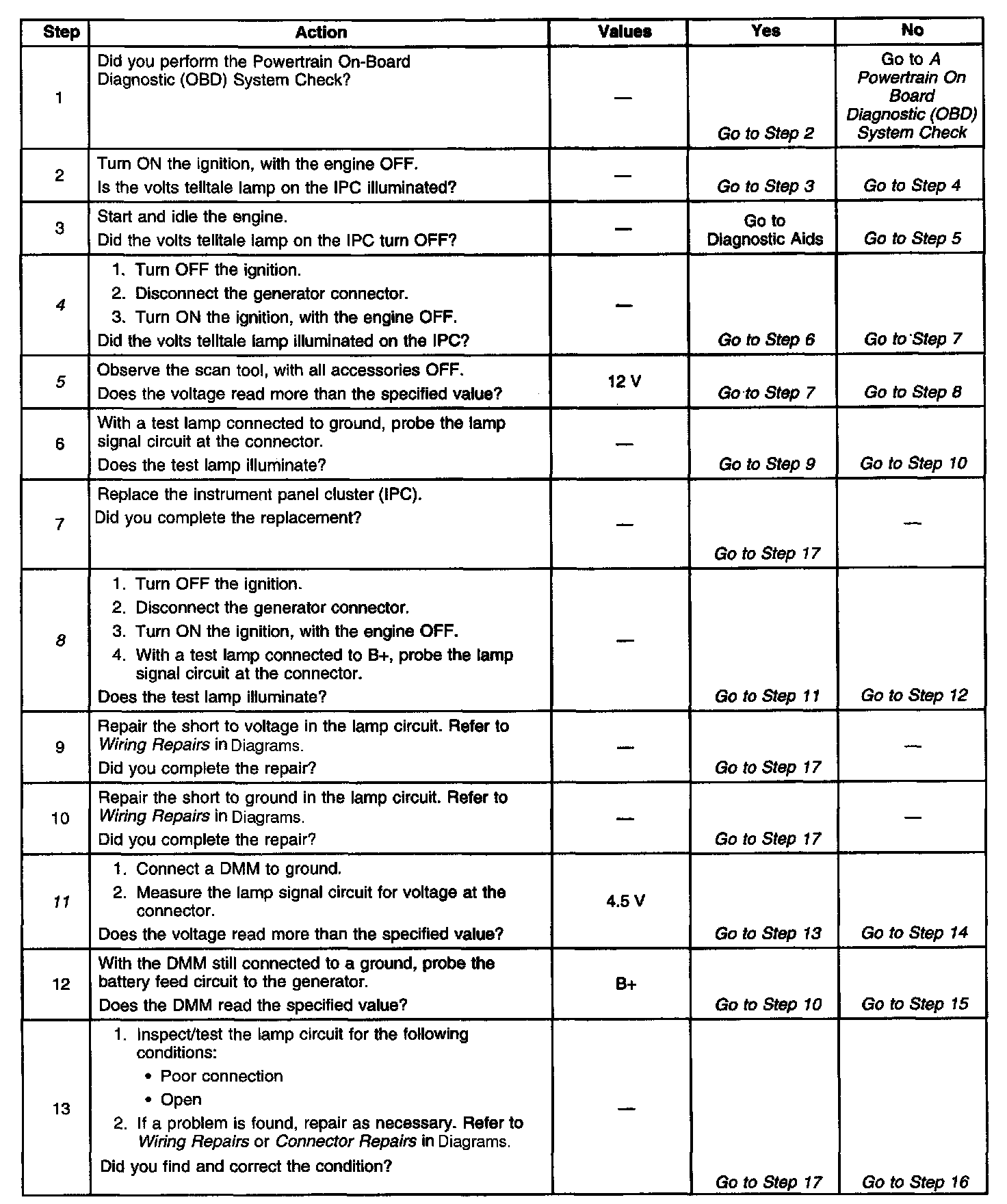 4. If the volts telltale lamp is not operating, either a short circuit or the IPC is malfunctioning. This determines whether the L circuit, generator, or IPC is malfunctioning.