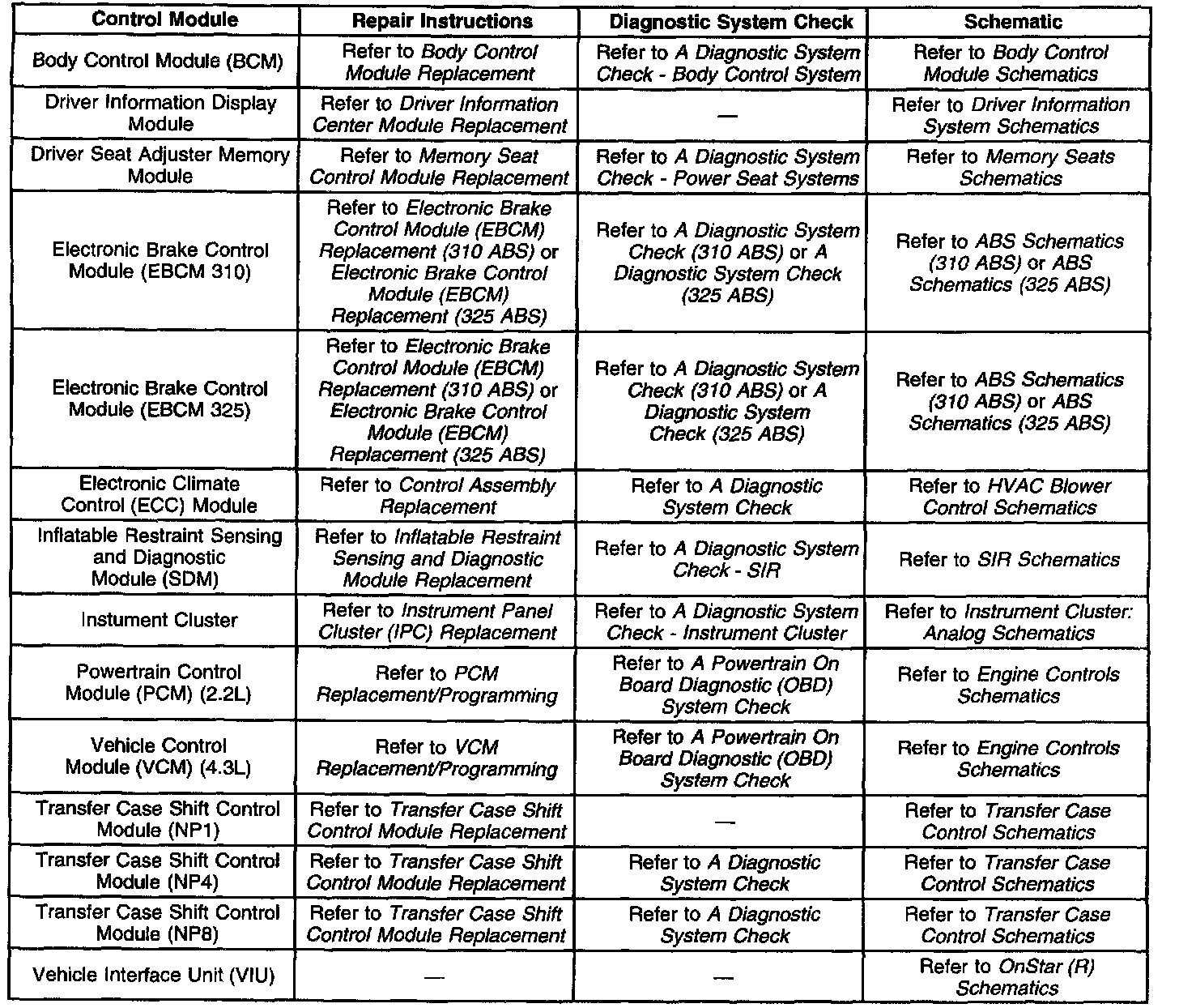 Control Module References