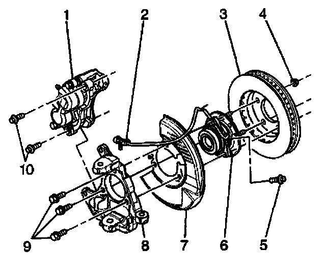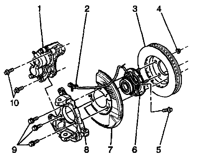 4. Remove the hub and rotor. Refer to Brake Rotor Replacement- Front