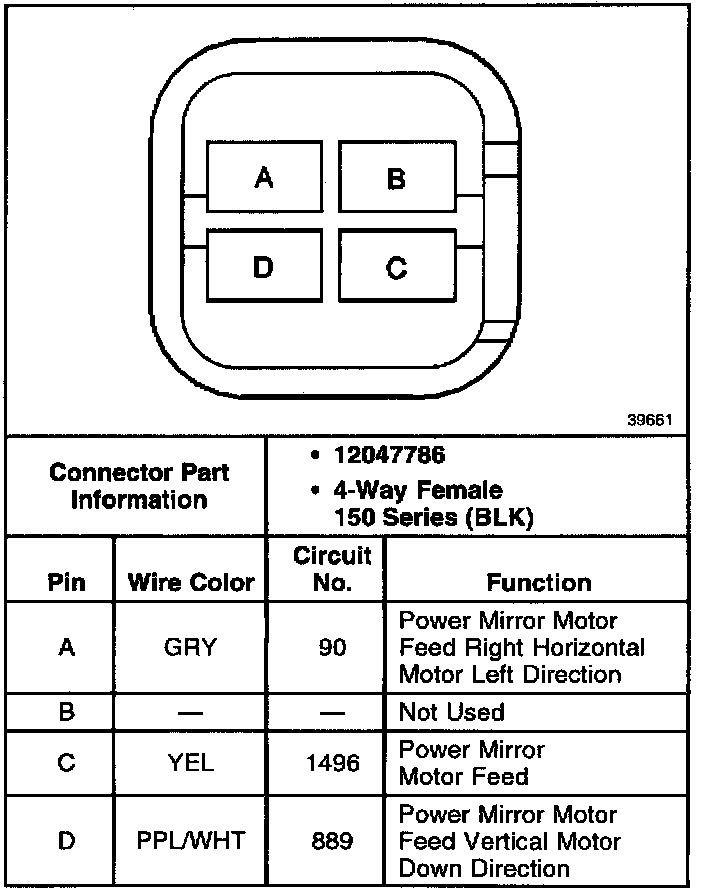 O/S Rear View Mirror Door RH Connector:
