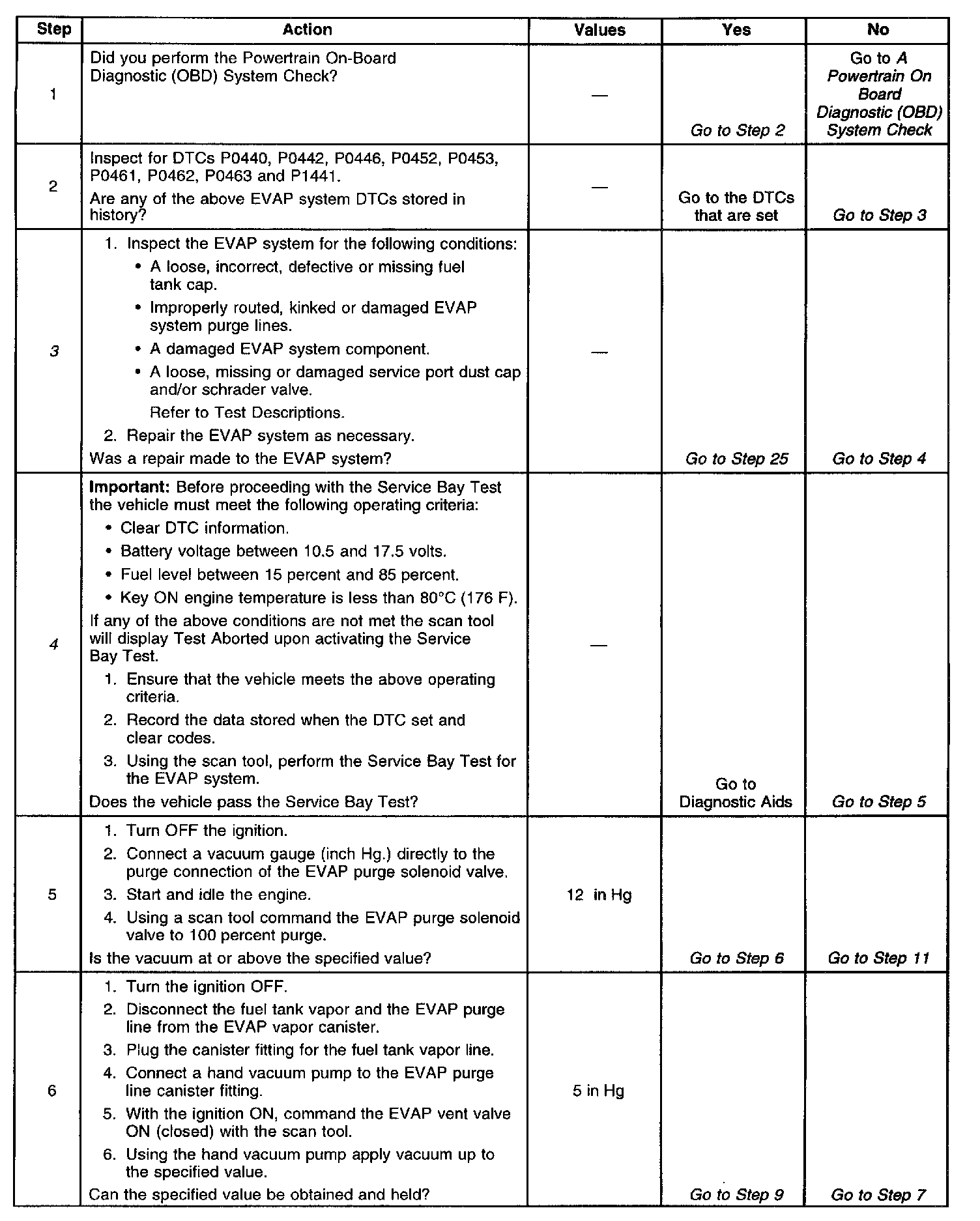 If the Service Bay Test can not be run, proceed to Step 5. If a fault is not currently present the diagnostic table steps will return you to Step 3.