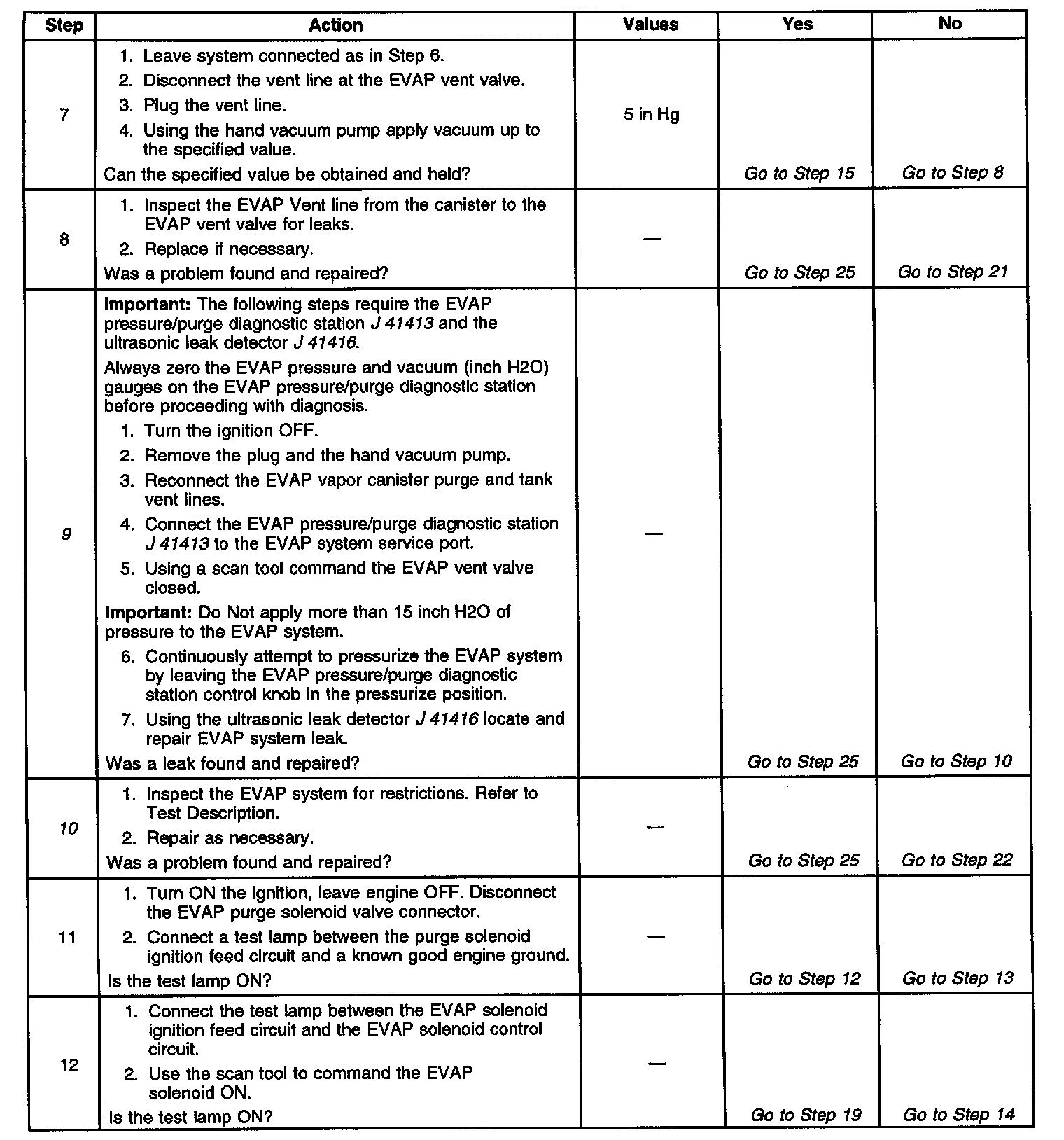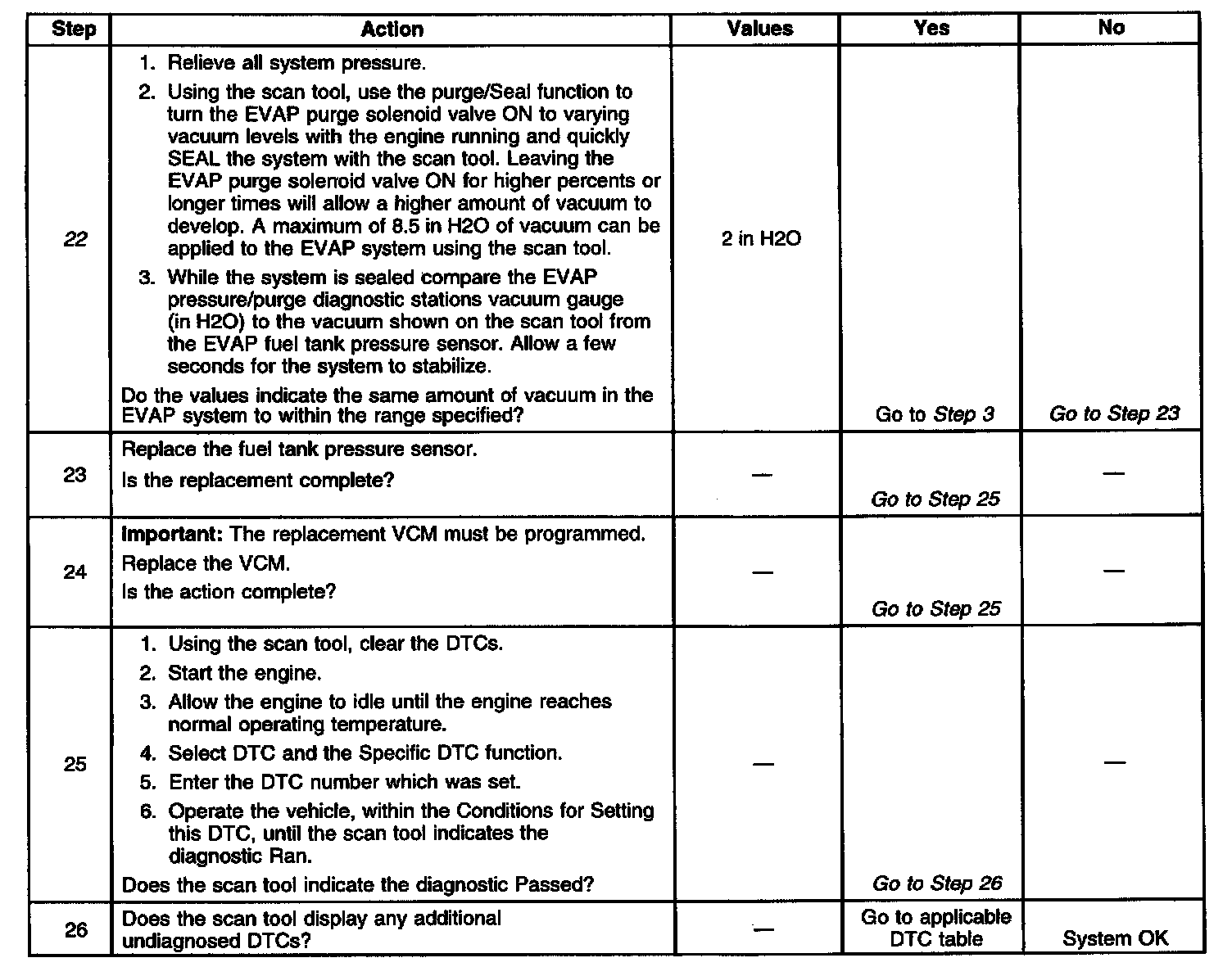 22. An EVAP pressure sensor that does not correctly respond to vacuum (or pressure) will cause this DTC to set.