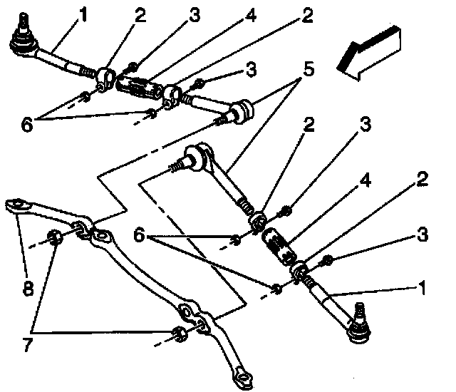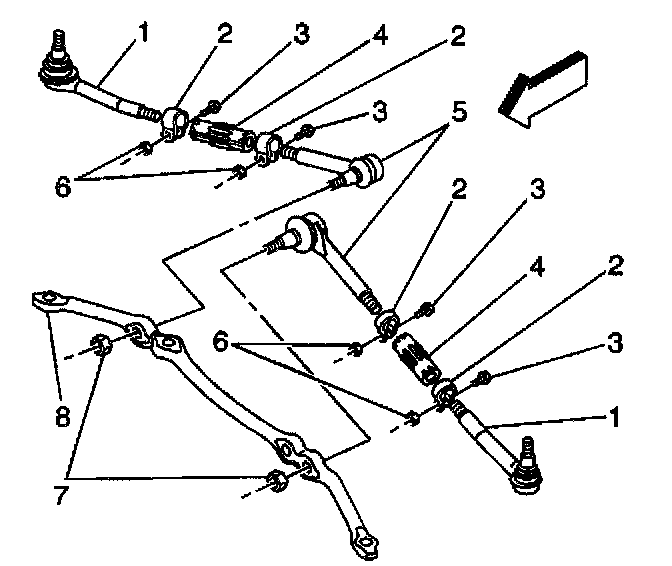 3. Use the J 29193 in order to install the inner tie rod (5) to the relay rod (8). Ensure that the seal is on the stud.