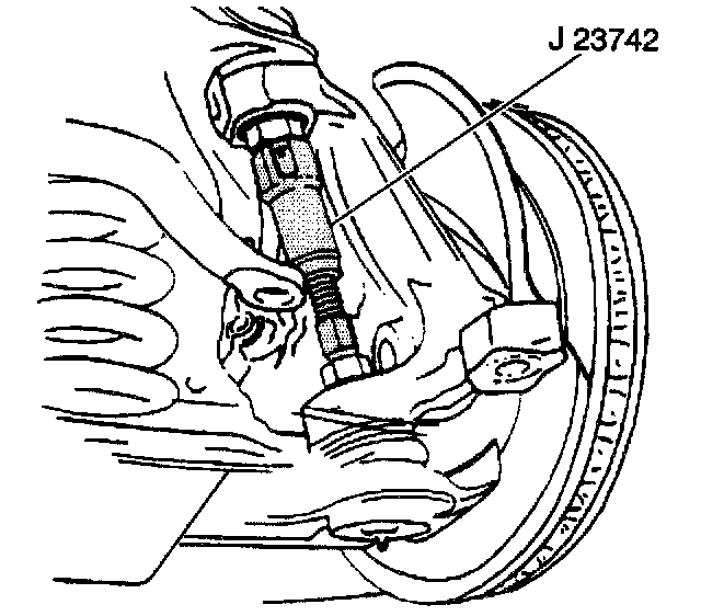 5.1. Use the J 23742 in order to break the lower ball joint from the steering knuckle.