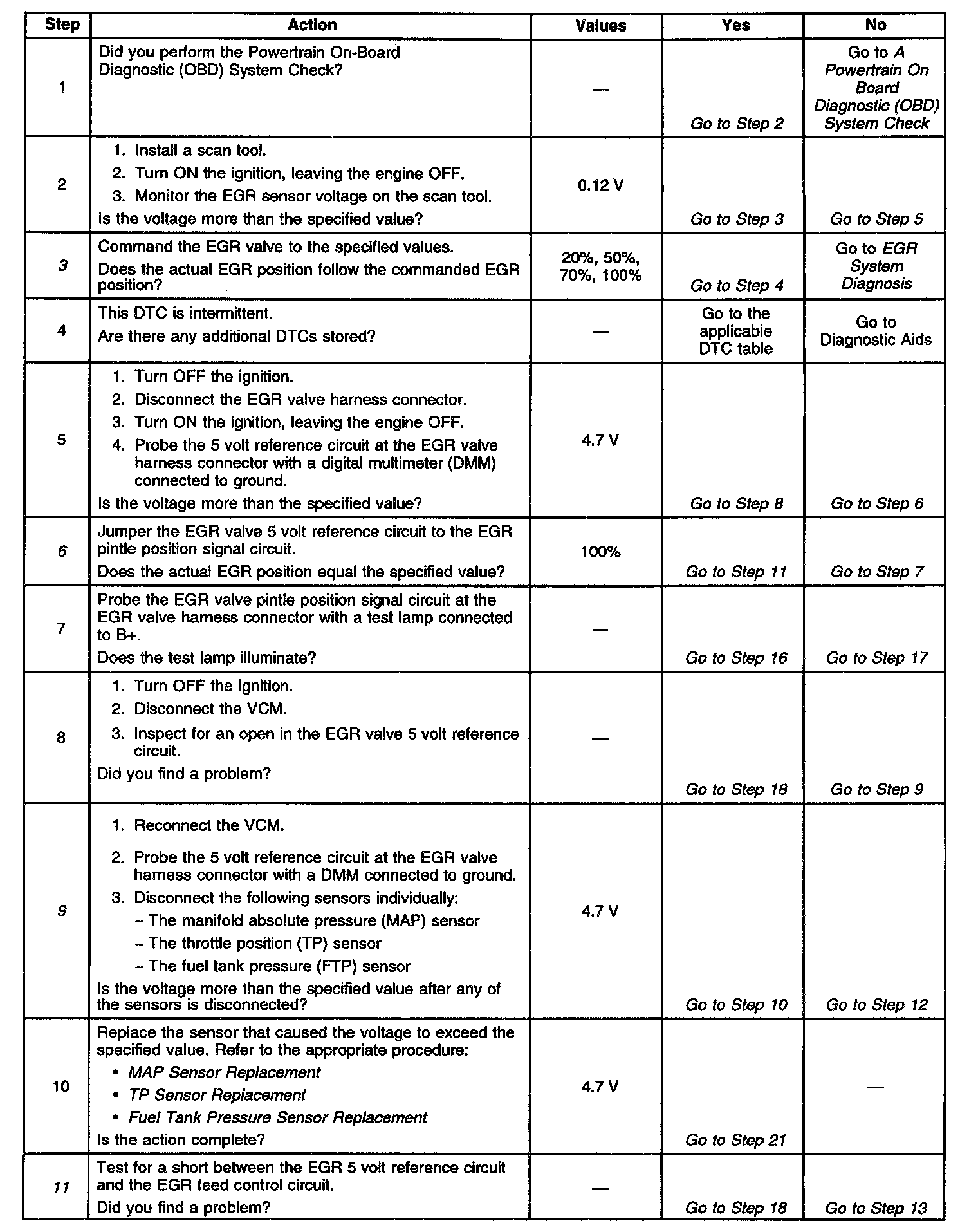 11. A 5 volt reference circuit short to the EGR valve feed control circuit will ground through the EGR valve when the EGR valve harness connector is connected.