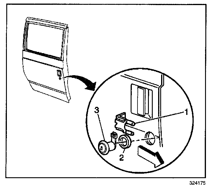 3. Remove the lock rod from the lock cylinder (3).