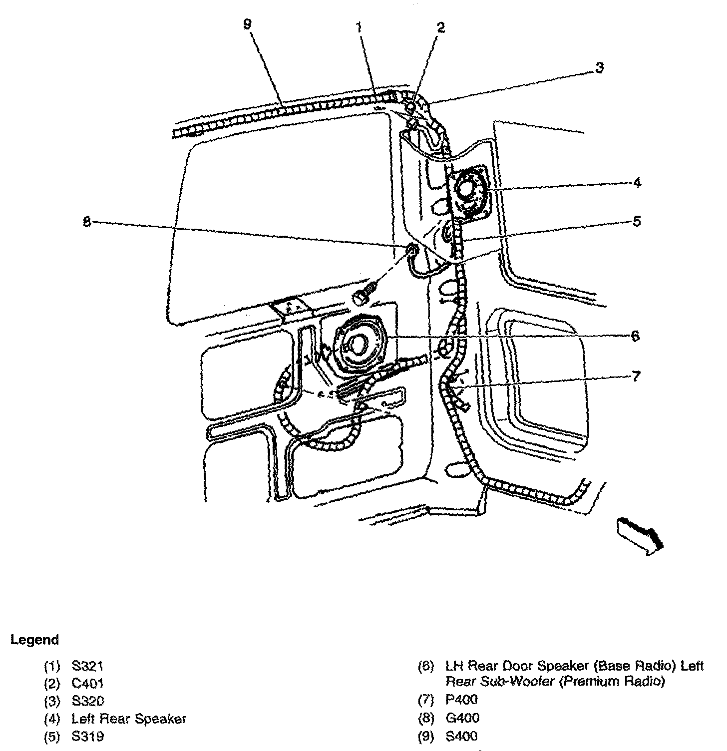 DR Speaker,LH Rear(Base Radio) Sub-Woofer,Left Rear(Premium Radio):