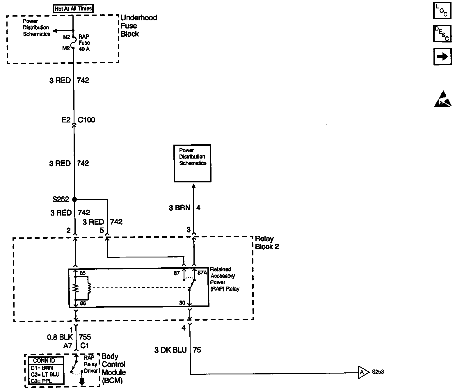 Retained Accessory Power (RAP) Schematics: RAP Fuse, Body Control Module: