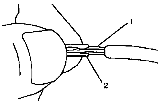 6. Overlap the two stripped wire ends and hold them between thumb and forefinger.