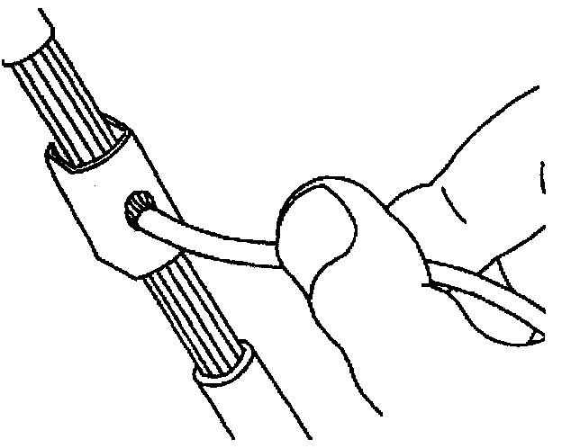^ Strip approximately 7.5 mm (5/16 in) of insulation from each wire to be spliced.