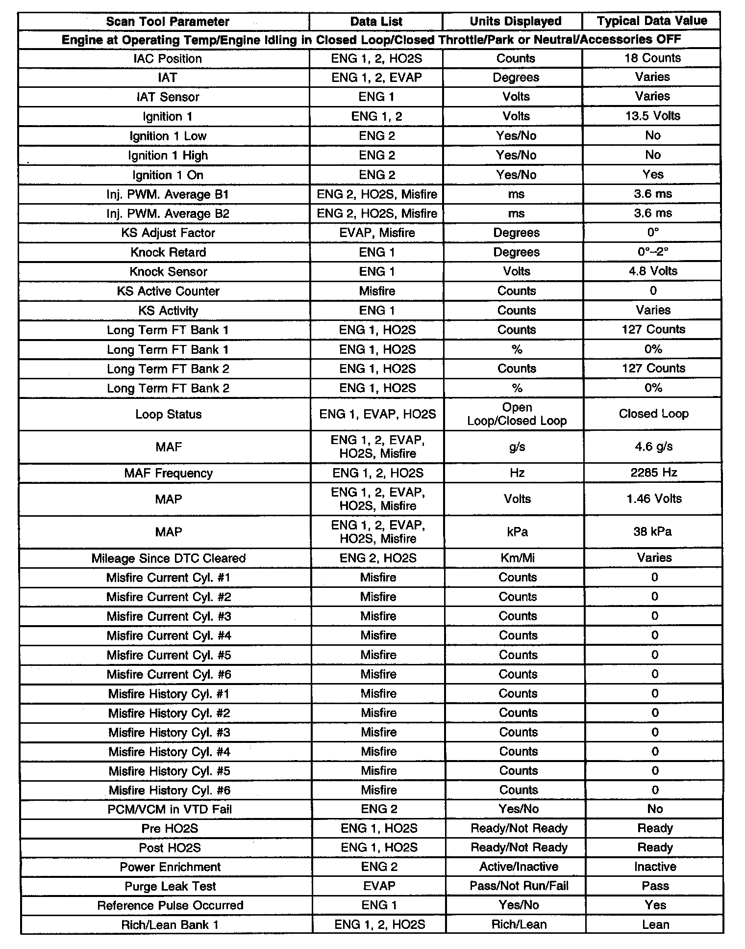 Scan Tool Data Display(Part 2 Of 3):