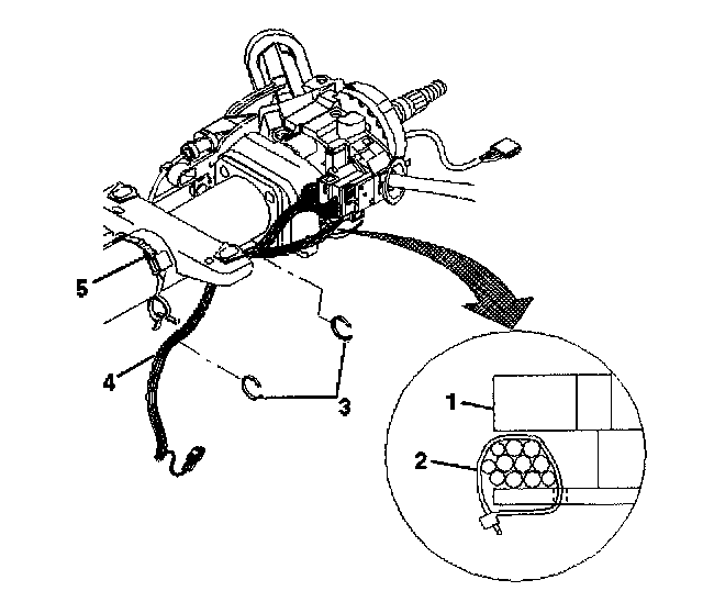 5. Pop the wire harness assembly (4) out of the wire harness strap (5).