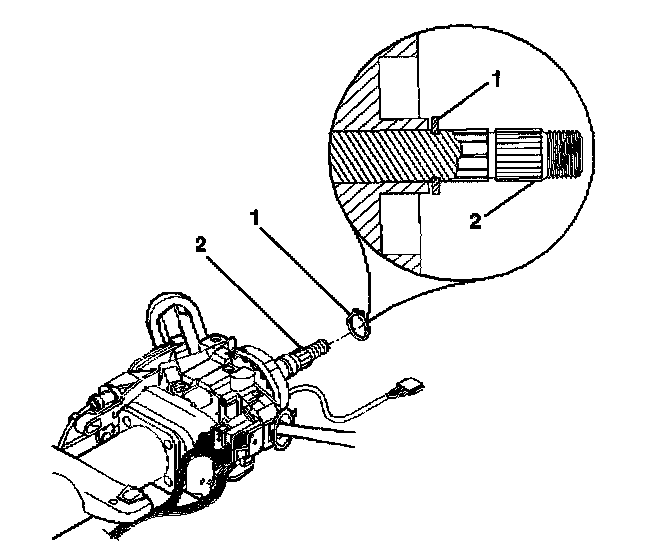 5. Install the coil assembly retaining ring. Ensure that the ring (1) is firmly seated in the groove on the upper shaft assembly (2).