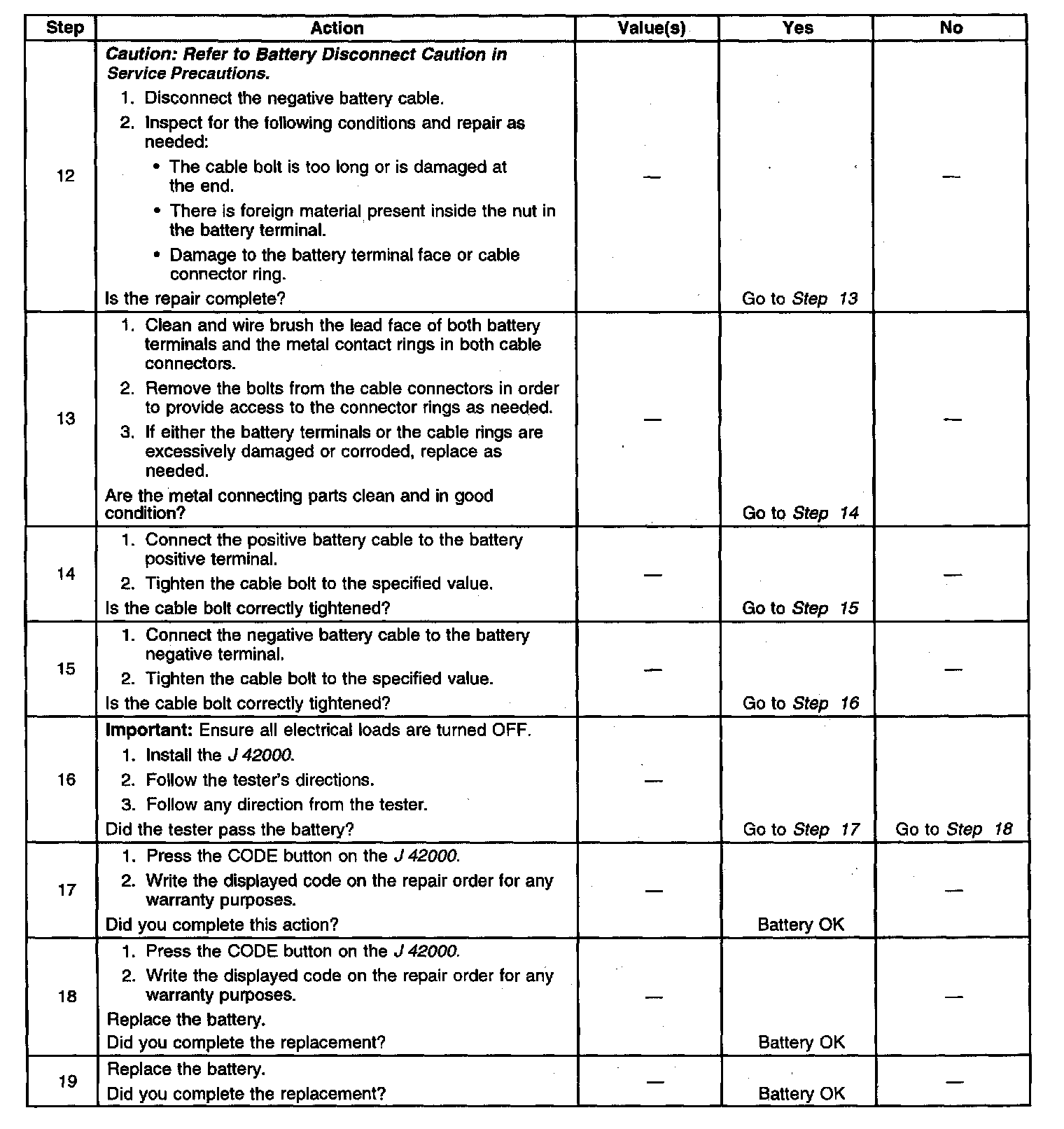 ^ If a REPLACE BATTERY result is obtained for a battery that is below 4°C (40°F), perform the following steps: