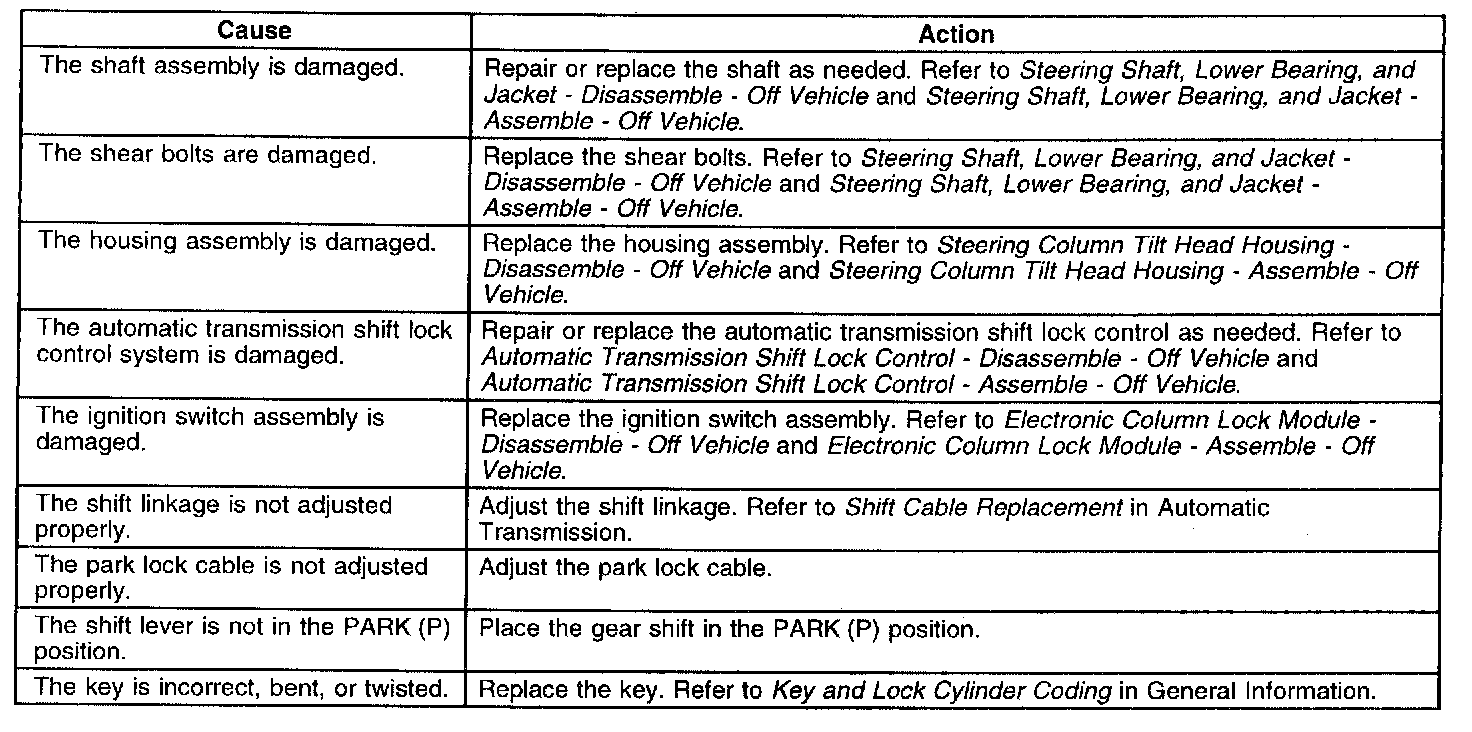 Lock System Does Not Lock - Tilt Column