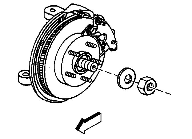 Caution: To prevent personal injury and/or component damage, do not allow the weight of the vehicle to load the front wheels, or attempt to operate the vehicle, when the wheel drive shaft(s) or wheel drive shaft nut(s) are removed. To do so may cause the inner bearing race to separate, resulting in damage to brake and suspension components and loss of vehicle control.