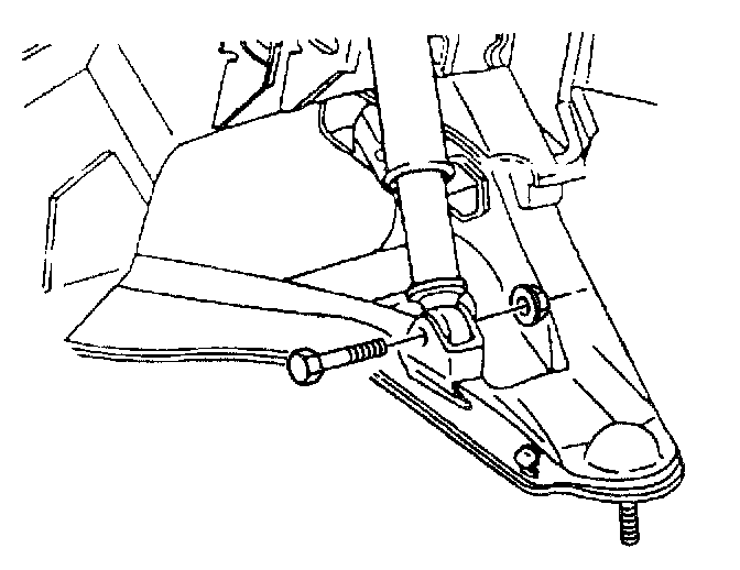 12. Remove the shock absorber bottom mounting nut and the bolt.
