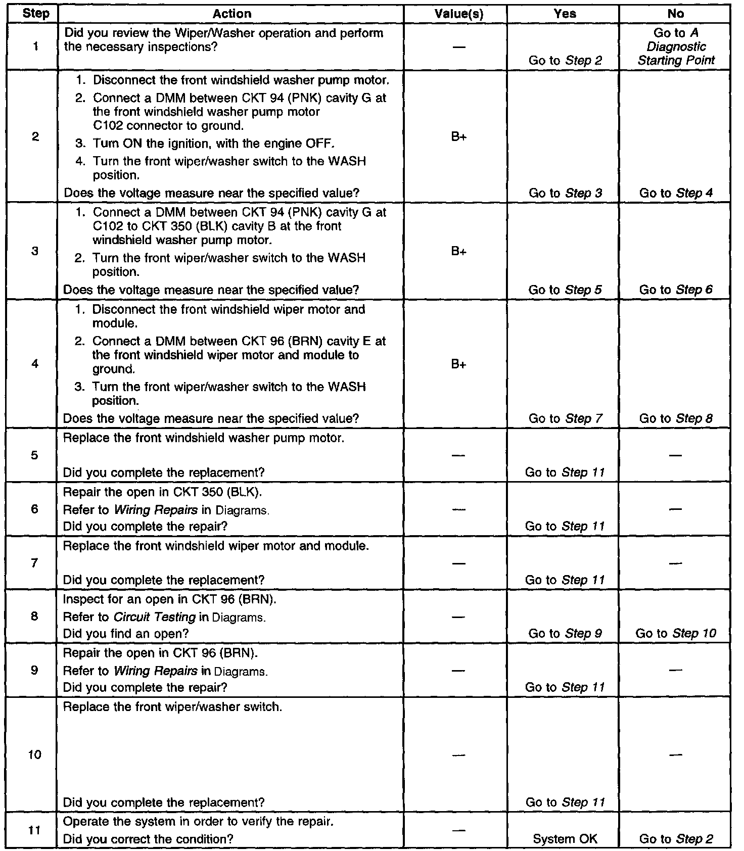 Washer Inoperative
