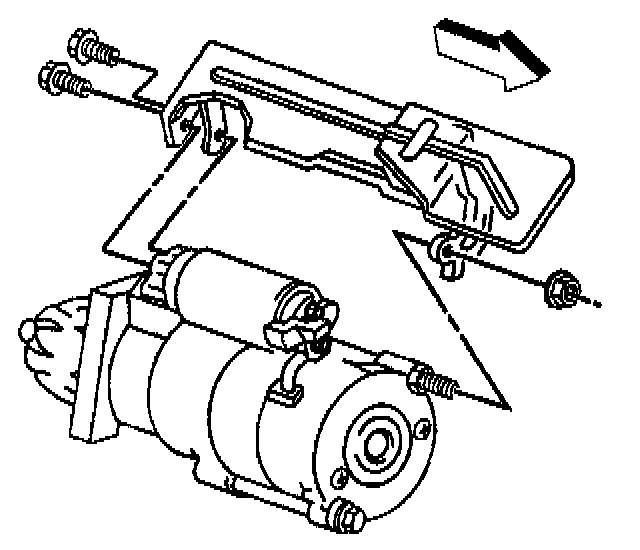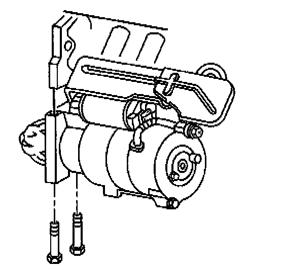 2. Remove the starter motor bolts and shims (if present) from the engine.
