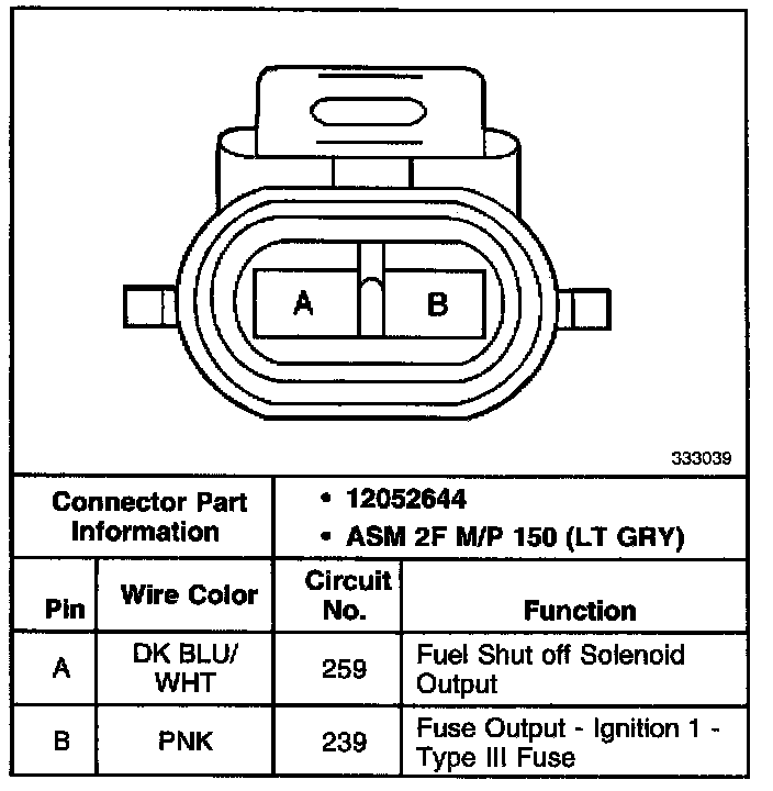 Engine (Fuel) Shut off Solenoid Connector: