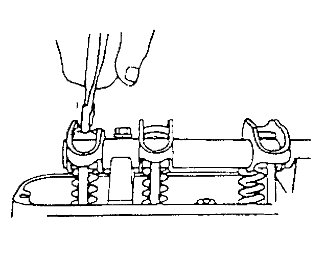 5. Use a drift of at least 13 mm (1/2 inch) in diameter to install new retainers to the valve rocker arm shaft.