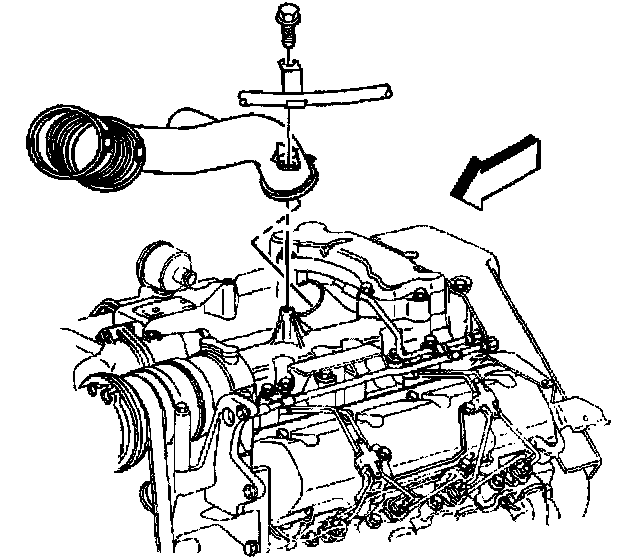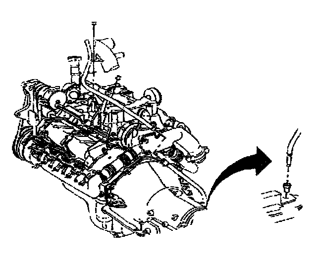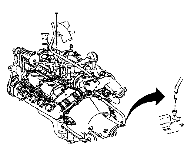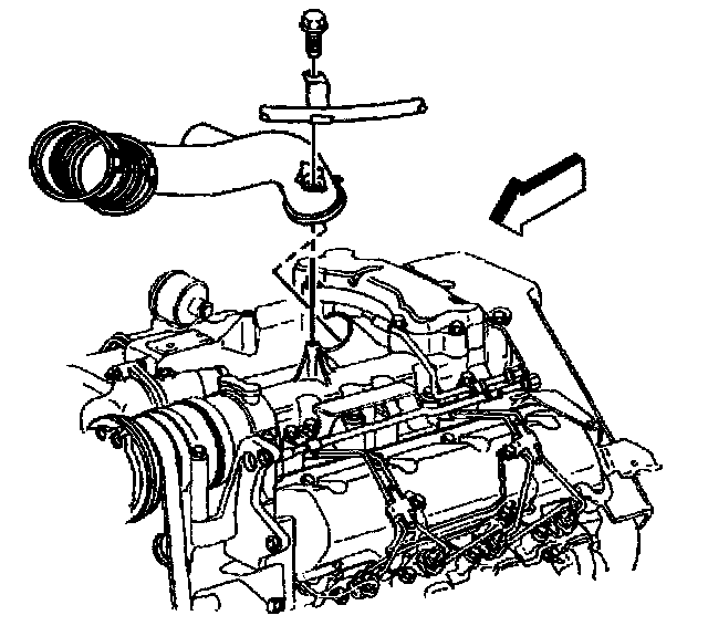 6. Remove the transmission oil level indicator tube from the upper intake manifold.