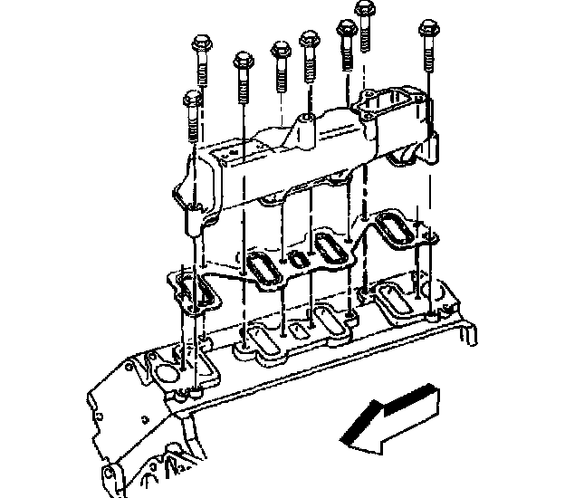 10. Install the bolts to the center intake manifold.