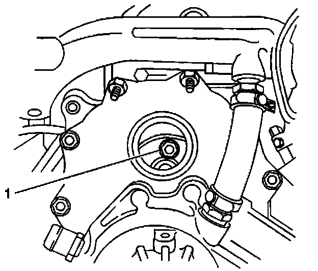 10. Rotate the engine in order to gain access to the bolts (1) that hold the driven gear to the injection pump. The access is gained through the oil filler neck hole.
