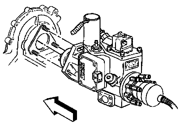 IMPORTANT: Be sure that the locating stud on the injection pump hub goes into the slotted/elongated hole in the driven gear.