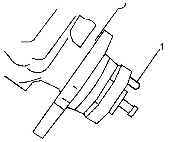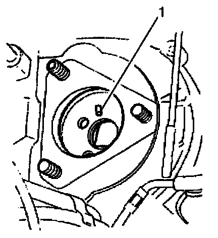 3. Install the injection pump, making sure the locating stud is positioned within the slotted/elongated hole (1) in the driven gear.