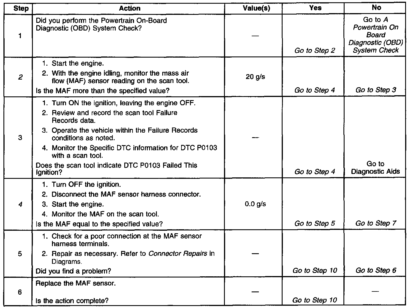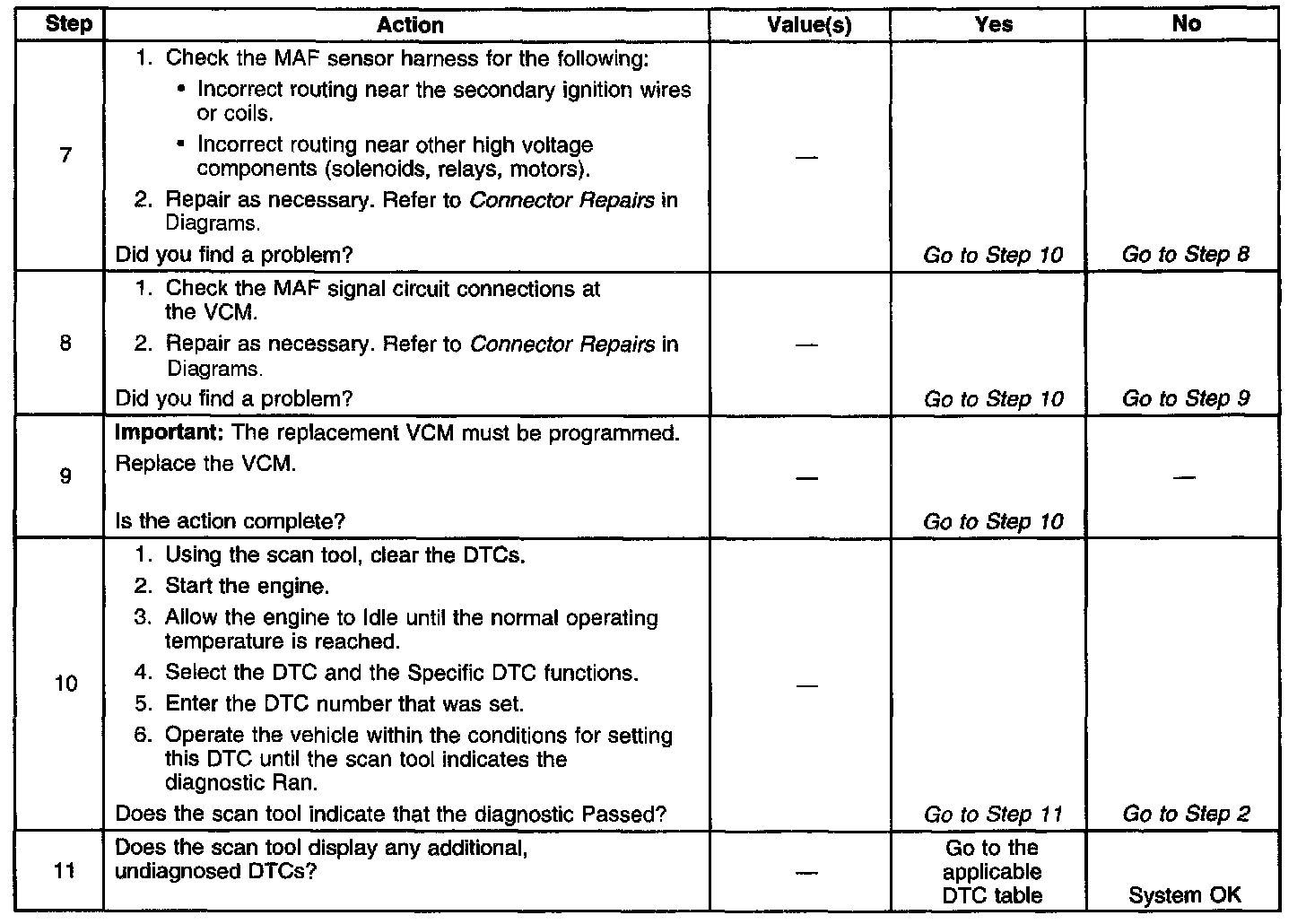 ^ A damaged harness. Inspect the wiring harness for damage. If the harness appears to be OK, observe the scan tool while moving connectors and wiring harnesses related to the MAF sensor. A change in the display will indicate the location of the fault.