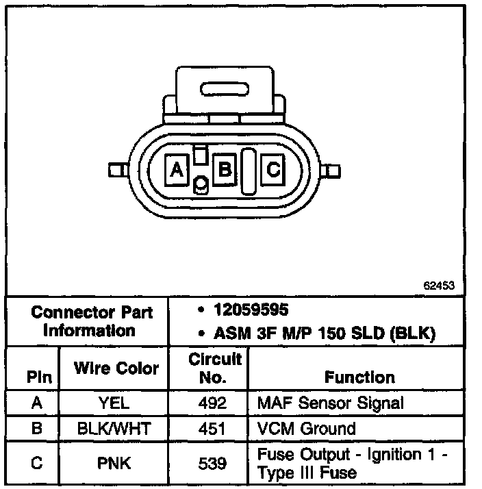 Mass Air Flow (MAF) Sensor Connector: