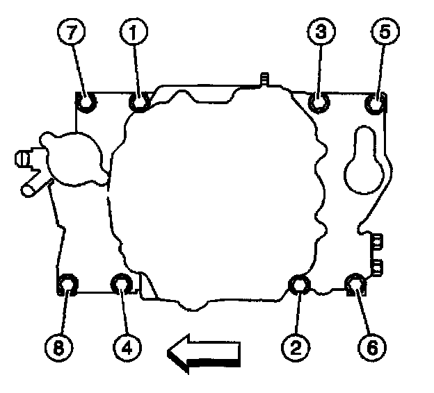 10.1. Tighten the bolts on the first pass in sequence (1-8) to 3 Nm (27 inch lbs.).