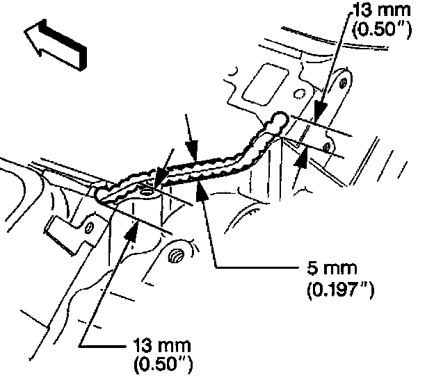 4. Extend the adhesive bead 13 mm (0.50 inch) onto each lower intake manifold gasket.