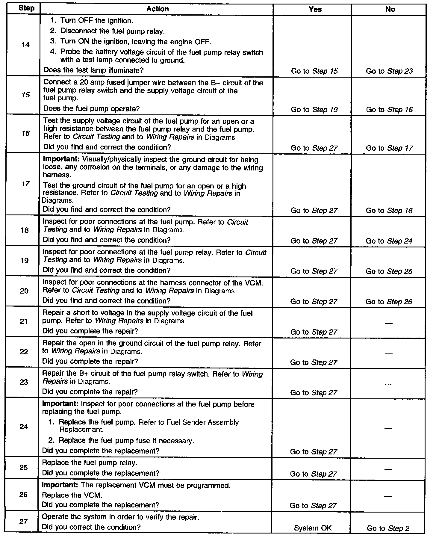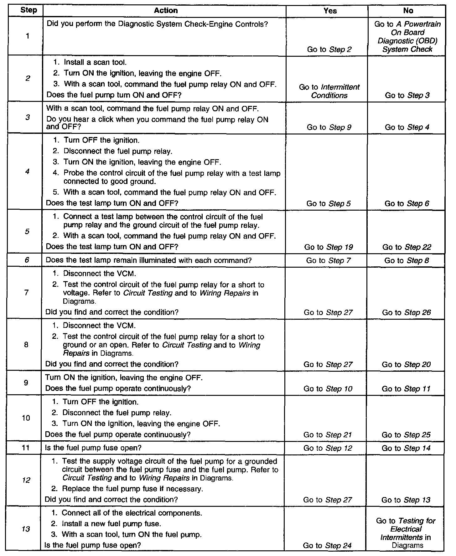 Fuel Pump Electrical Circuit Diagnosis