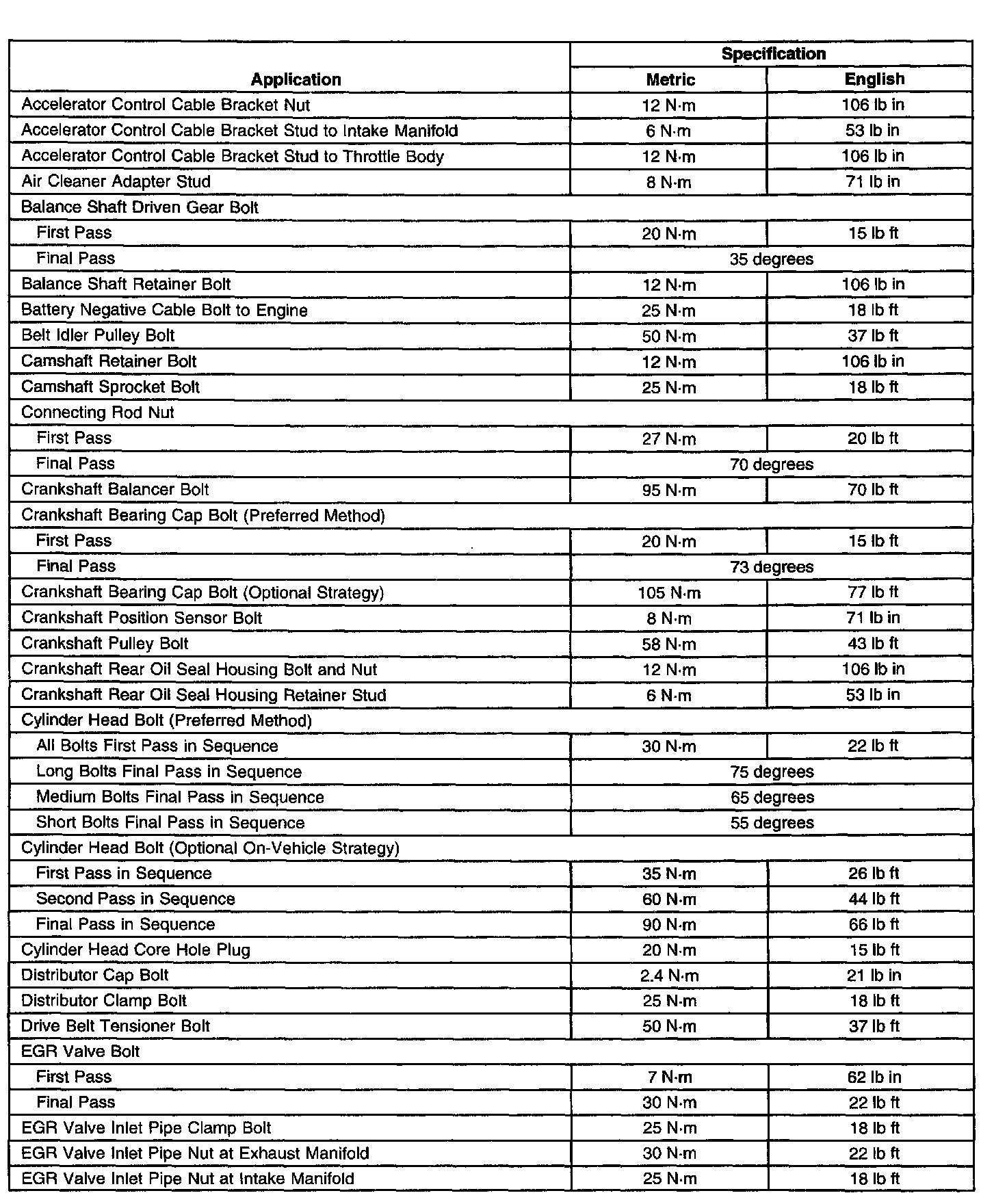 Fastener Tightening Specifications