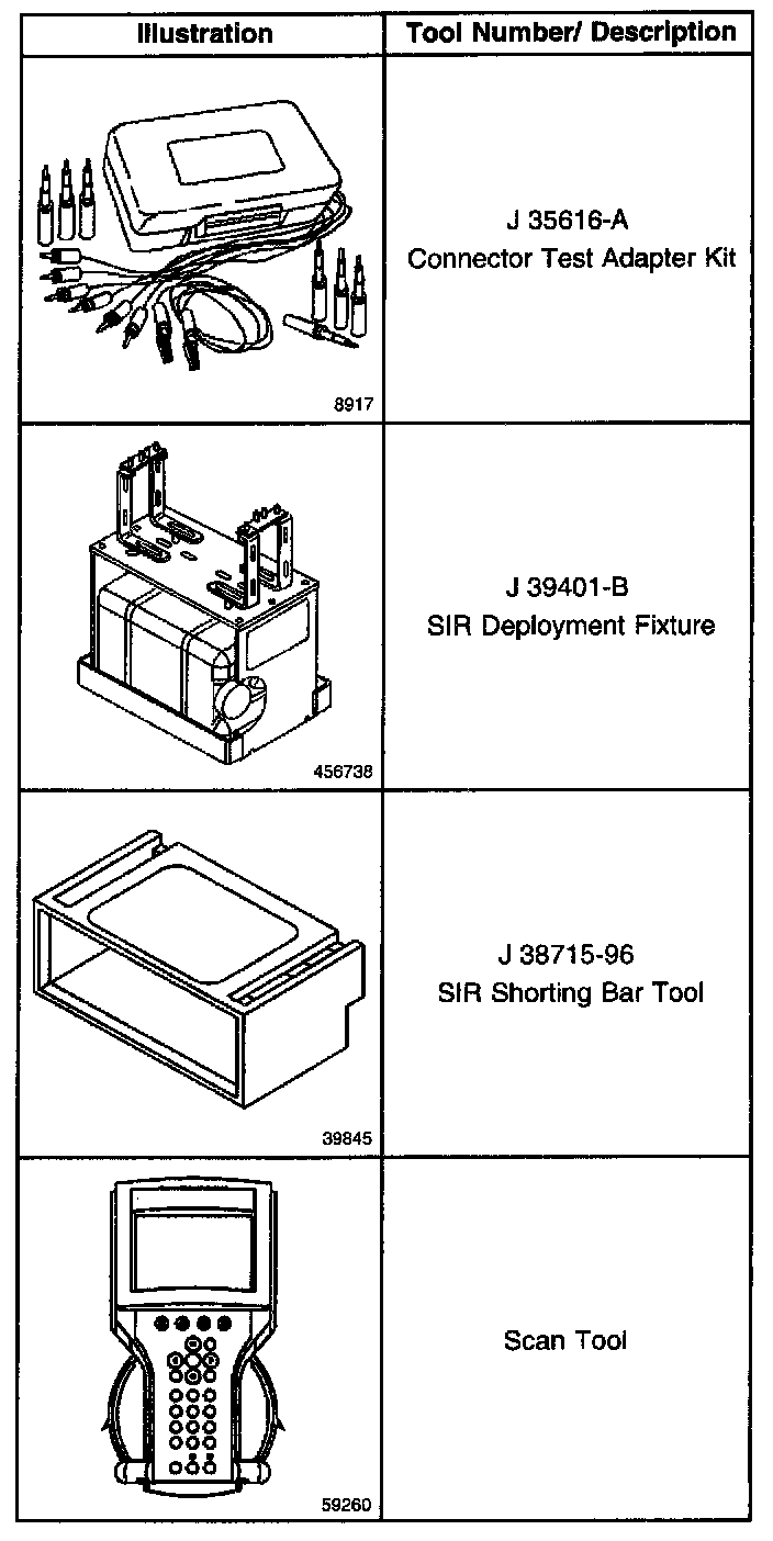 Use the J 38715-A SIR Driver/Passenger Load Tool only when the SIR diagnostics call for use. The Load Tool is used as a diagnostic aid and a safety device in order to prevent inadvertent inflator module deployment.